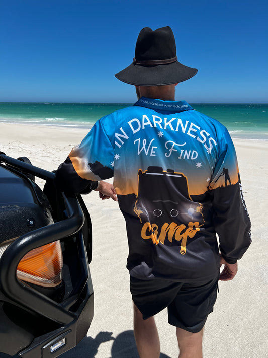 In Darkness We Find Camp long sleeve sublimated fishing shirt!