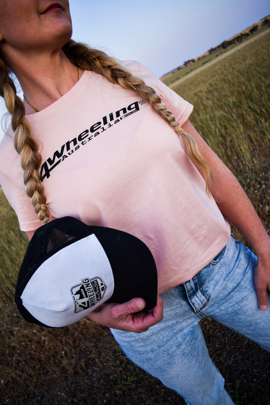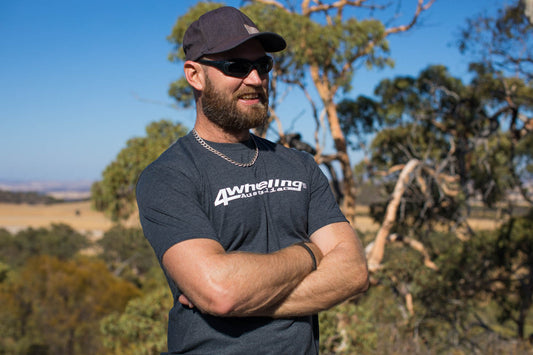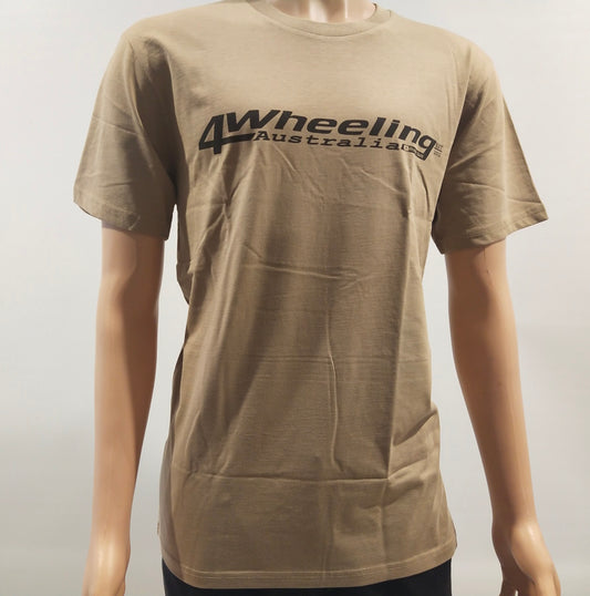Men’s sand colour tee with 4Wheeling Australia logo across the chest.